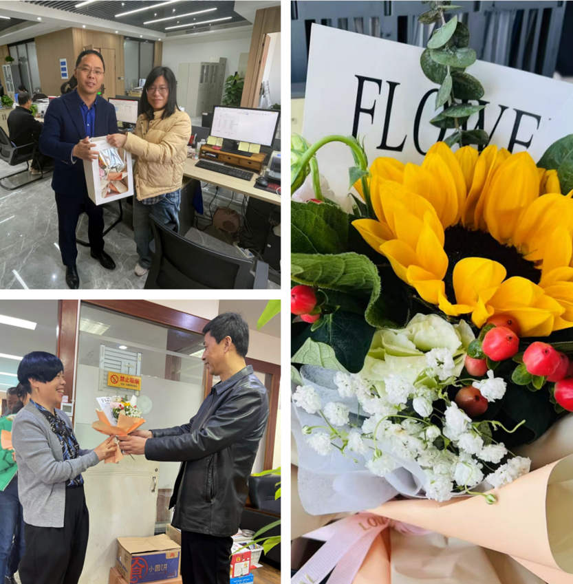 陽春三月(yuè),在第113個(gè)“三八”國(guó)際勞動婦女(nǚ)節來(lái)臨之際,市(shì¶)教投公司領導班子(zǐ)為(wèi)公司女(nǚ)職工(gōng)送上(shàng)節日(rì)的(de)祝福'和(hé)慰問(wèn),對(duì)各位“女(nǚ)神”的(de)辛勤付出α表示衷心的(de)感謝(xiè),希望在今後的(de)工(gōng)作(zuò)中能(néng)繼續以“巾帼不(bù)讓須眉”的(de)豪情,凝心聚力、敢 于拼搏,不(bù)斷為(wèi)企業(yè)發展增光(guāng)添彩。