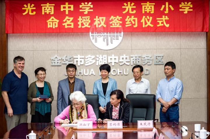 4月(yuè)4日(rì),人(rén)民(mín)音(yīn)樂(yuè)家(jiā)施光(guāng)南(nán)先生(shēng)的(de)夫人'(rén)洪如(rú)丁女(nǚ)士和(hé)金(jīn)東(dōng)區(qū)政府簽訂授權書(shū),多(du&ō)湖(hú)初中、多(duō)湖(hú)小(xiǎo)學分(fēn)别更名為(wèi)光(guāng)南(nán)中學、光(guāng)南(nán)小(xiǎo≠)學,并均由金(jīn)華市(shì)外(wài)國(guó)語學校(xiào)托管,光(guāng)南(nán₽)中學将挂牌金(jīn)外(wài)合作(zuò)學校(xiào),光(guāng)南(nán)小(xiǎo)學将挂牌金(jīn)外(≈wài)附屬小(xiǎo)學。