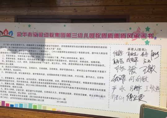 宣誓後,老(lǎo)師(shī)們陸續在師(shī)德師(shī)風(fēng)承諾書(shū)上(shàng)簽名,立志×(zhì)成為(wèi)高(gāo)素質、品德優的(de)合格教師(shī),牢記誓言、不(bù)忘初心,為(wèi)了(le)共同的(de)幼教事(shì)業(yè)奉獻青春和(↔hé)熱(rè)情。