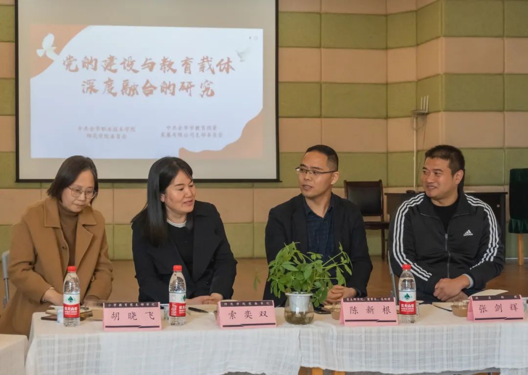 為(wèi)進一(yī)步推動主題教育走深走實,探尋“黨建+教育+國(guó)企&rdquo∑;深度融合模式,以調查研究助力公司高(gāo)質量發展,11月(yuè)27日(rì),金(jīn)華職業(yè)技(jì)術(shù)學院師(shī)範學院與市(shì)教投&公司組織開(kāi)展聯合調研,并就(jiù)深化(huà)校(xiào)企合作(zuò)進行(xíng)座談交流。金(jīn)職院師(shī)範學院黨委書(shū)記、副院長(cháng&)索奕雙,市(shì)教投公司黨支部書(shū)記、董事(shì)長(cháng)、總經理(lǐ)陳新根,副總經理(lǐ)張劍輝參加調研活動。